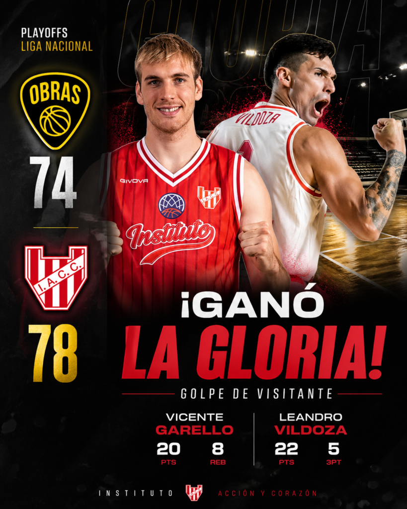 Instituto arrancó con el pie derecho su camino en los playoffs de la Liga Nacional de Básquet. En condición de visitante, superó a Obras Basket por 78 a 74 en el Templo del Rock y se adelantó en la serie.