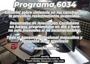Editorial sobre violencia en las canchas de la provincia recientemente acaecidos. Resultados de Asociación Cordobesa en juegos programados en dia y hora no solo inusuales si no incompresibles. Todo el basquet profesional masculino y femenino de la provincia